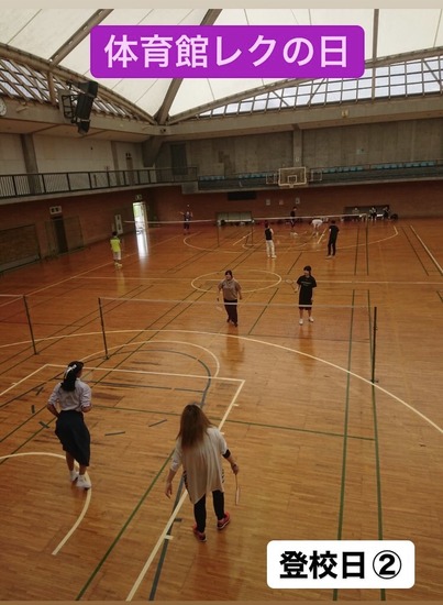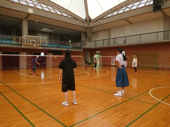 藤代体育館の1/2フロアを貸切り予約をして,バドミントンやバレーボールなどの特別活動をおこないました。