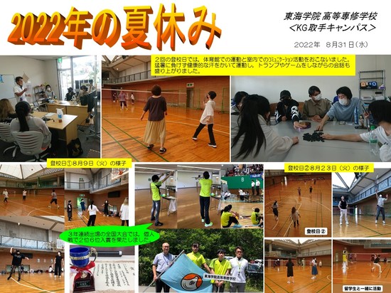 連日35℃を超える酷暑が続いたりする中で,7月後半の「全国高等専修学校体育大会」や8月に「登校日・コミュニケーションデー」を2回設定しました。