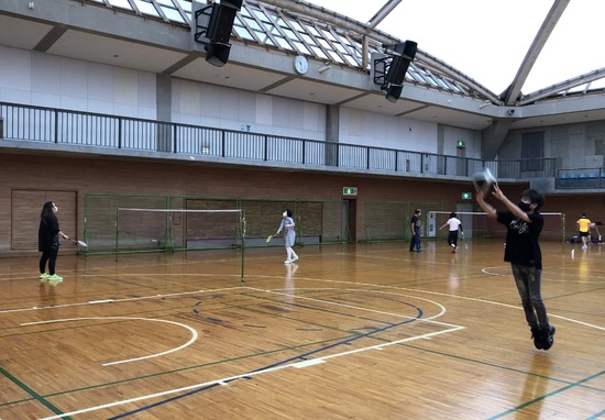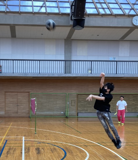 スポーツの秋らしい本校での特別活動は、やっぱりバドミントンですが,バスケットのシュート練習もできます。