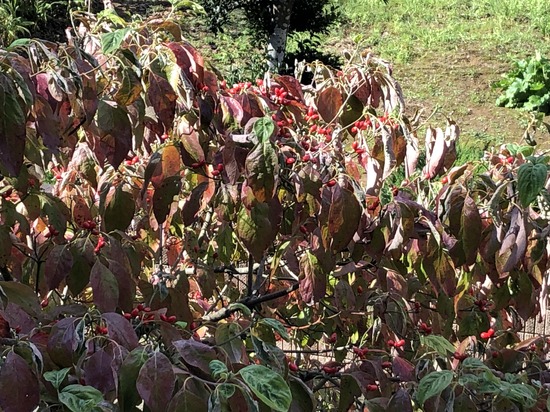 さらに近づいてよく見ると,葉っぱが紅葉しているだけでなくたくさんの赤い実をつけています。