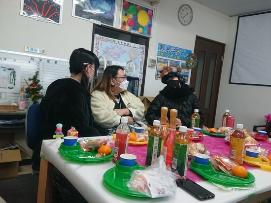 今年は,あいこになる確率が低い『一発じゃんけん』でプレゼント交換の順番を決めました。生徒みんなで会場準備をして,軽食を食べながらのイベント盛り上がりました。