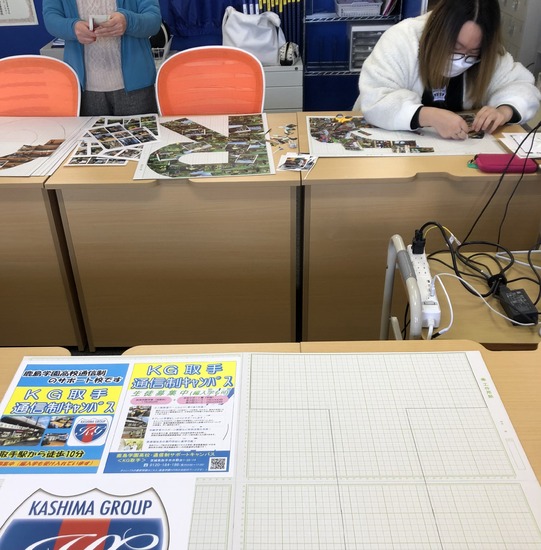 お知らせ KG取手通信制サポートキャンパス『K・G T・O・R・I・D・E』の8文字の中に写真を貼り付けていき,校名パネルの制作を始めています。