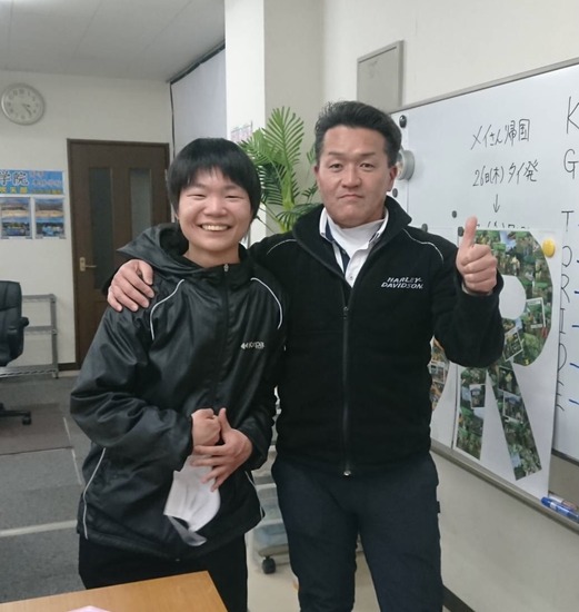 社会人としてしっかり働いている卒業生の1人が,シフトの休みの日に来校してくれました。