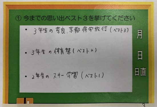お知らせ KG取手通信制サポートキャンパス部活動・修学旅行・体育祭・スキー宿泊学習などなど・・・中学校での学校行事の思い出を入試面接で語っていました。