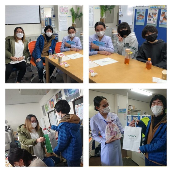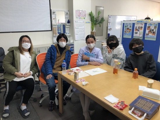 お知らせ KG取手通信制サポートキャンパス卒業を迎える3年生のお祝いに,OBや大切なゲストがプレゼントを持って集まってくれました。