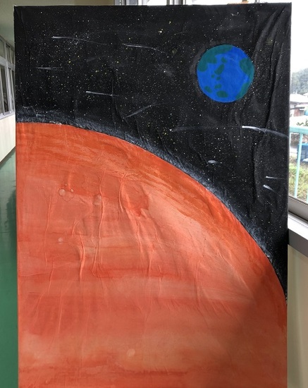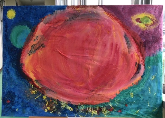 お知らせ KG取手通信制サポートキャンパス今年度、第一弾として取り組んだ作品テーマ「惑星」の抽象画が完成しました。