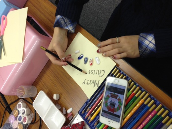 三宮キャンパスでは今年最後のネイルの授業がありました(*'▽')