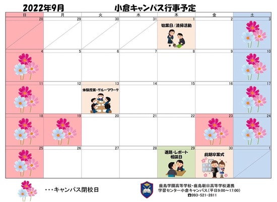 9月のキャンパススケジュールを載せていますので是非ご覧ください!
