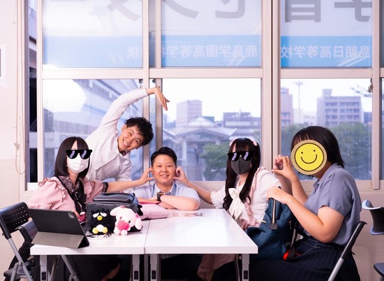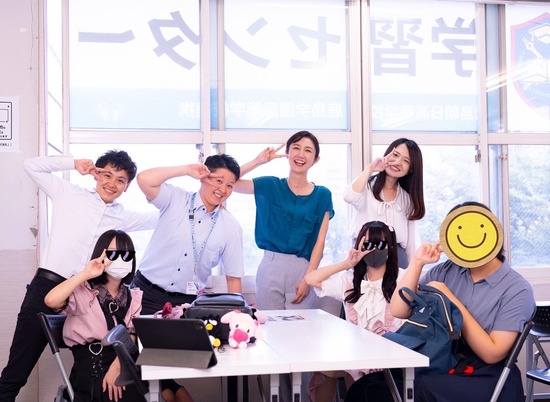 先日撮影していただいた写真!!生徒の顔は隠してますが、本当にいい笑顔です!