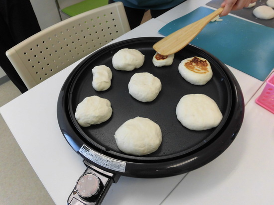ホットク班とカップケーキ班に分かれて、協力しながら進めました。