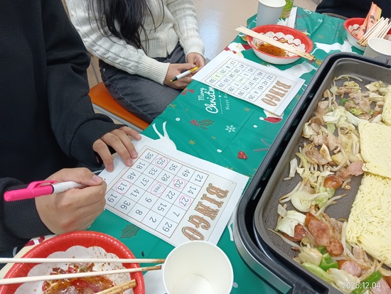 焼き肉クリスマス会 2025-12-04 ブログ エコール郡山 こんにちは! エコール郡山です! 今日は今年最後の特別活動、焼肉クリスマス会を行いました🎄 買い出しから準備、片付けまで協力しました。 おいしく食べたあとはビンゴ大会! 少人数ということもあり、のんびりゆるーい雰囲気で楽しめました。 今朝は吹雪のような悪天候で寒い1日となりましたが、そんな寒い日の焼肉は最高でした! 一覧へ