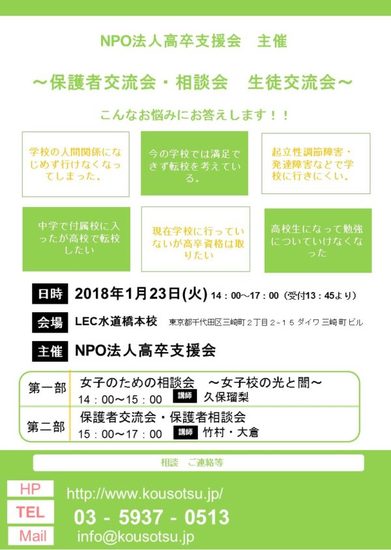 次回講演会、保護者会:1月23日(火)14時~水道橋教室にて