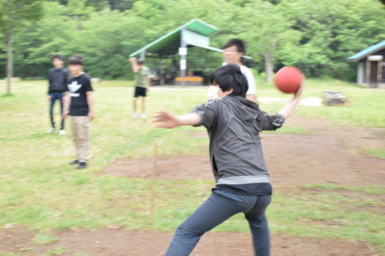 各々朝食をとり、テントを皆で片付けしてスムーズに終わったため全員でドッジボール2回目を行いました!