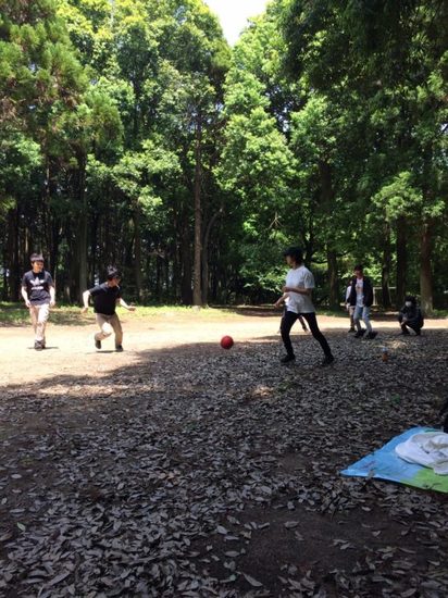 まだ、人数も少ないのでバリエーションも少なく飽きてきたので蹴鞠をしました。私含め、足でボールをコントロールするのが慣れていないメンバーだったので、SS編集長が嵌められ、ゲームは終了しました。