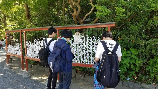 旗上弁財天社や蓮の池を拝見して、おみくじを引いている生徒もいました!結んでいましたが・・・結果はどうだったのでしょうね。