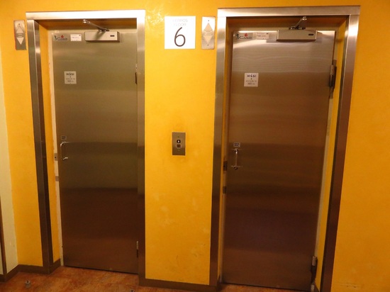 向こうではたまに開き戸型のエレベーターがあります。