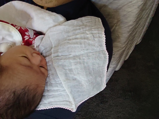 体力をつかうみたいなので寝てもらい、その間に私が抱っこしてゲップをさせます。