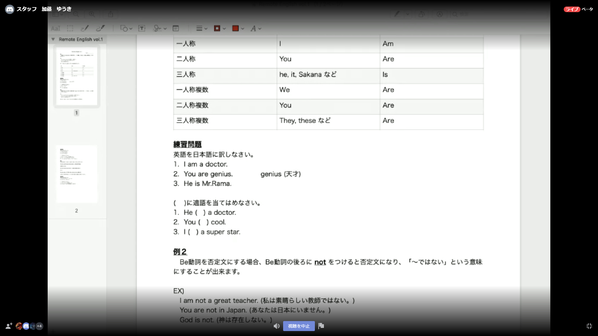 リモート授業は、当初ハングアウトを用いて行う予定でしたが、音質に問題があるとのことでDiscordに切り替えての授業となりました。