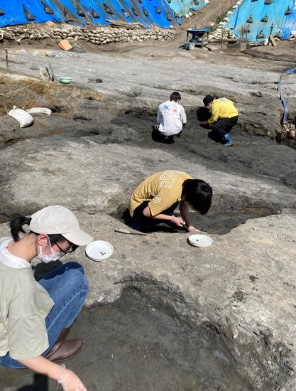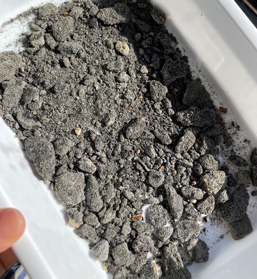 採掘した土はそのまま持ち帰り、乾燥させます…