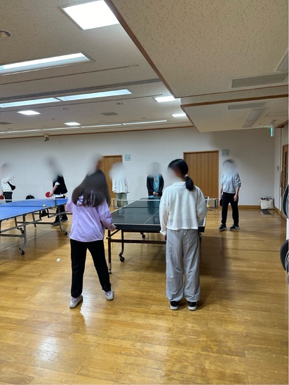 卓球台の準備(倉庫から自分たちで運んで準備します)や、