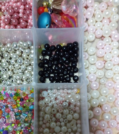 色まずは、色とりどりのパールビーズ、カットビーズ、ラウンドビーズの中から