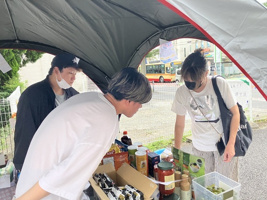 第1回目は戸塚キャンパスの生徒たち6名が事前準備から参加しました。事前準備の値札・POP作りは青葉キャンパスの生徒たちにも手伝ってもらい、工夫を凝らしたデザインで、とおりがかりの方々の目をひいていました。
