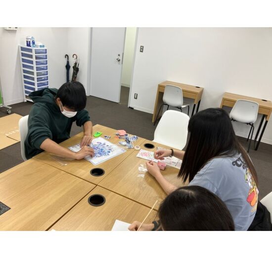 飾りつけに必要な買い出しをしてから、生徒たちは、スクラッチアート係やタペストリー係、ステンドグラスアート係、パーティション組み立て係などそれぞれ分かれてオシゴトをしてくれました。