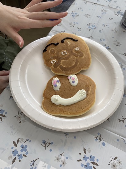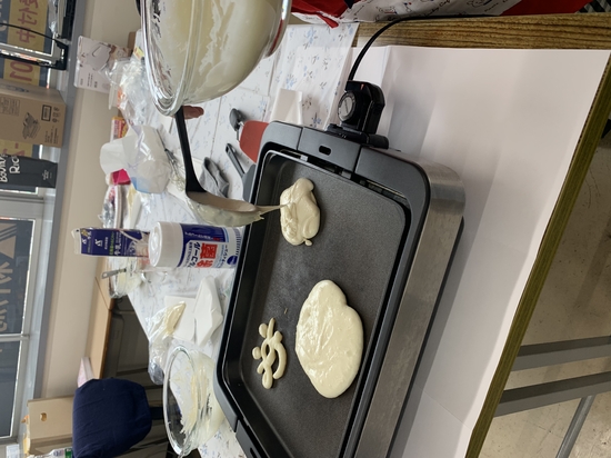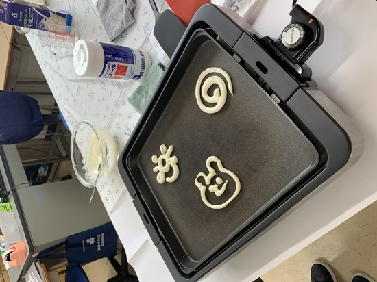 ホットケーキの焼き目を利用して絵も描いてもらいました。