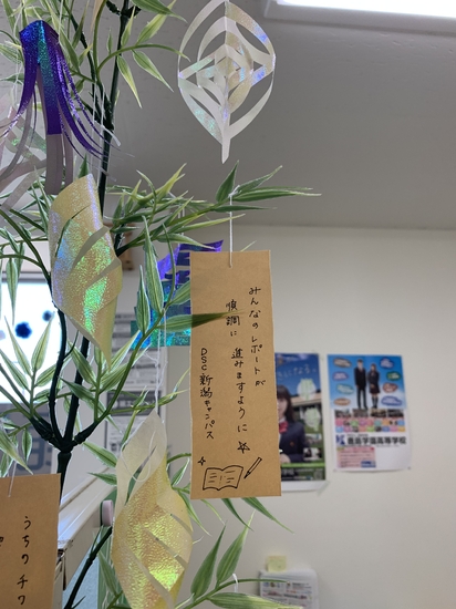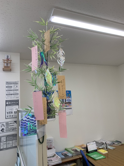 先月末あたりから笹を飾り、登校した生徒さん達に