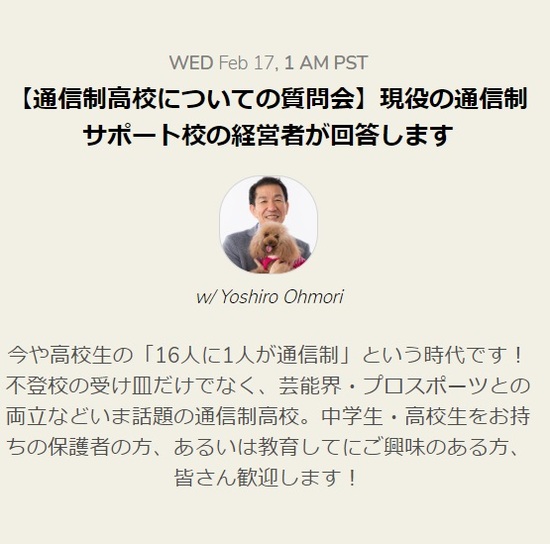 Clubhouseで本日18時!「通信制高校について質問会」を開催します!