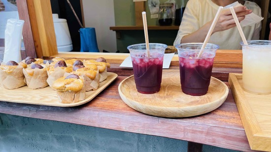 それまでの道のりはなかなか長かったですが、よく歩いて動かした体に、栗のマフィンと飲み物が身に沁みました(*^^*)