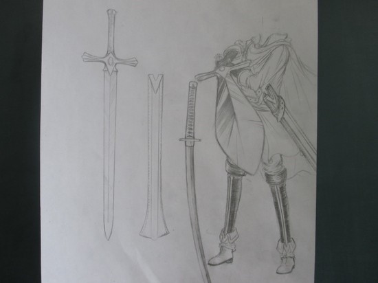Sさんは前回描いた武器をベースに体を加えていきました。