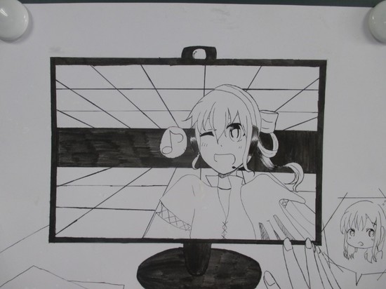 Iさんは、前回ペン入れをした絵にホワイトを入れ、細かい修正をして完成です