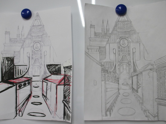 描いてきた背景のイラストに先生が添削を入れてくださいました。