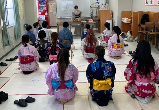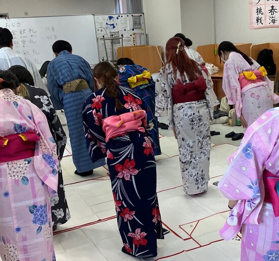 浴衣を持っていない生徒も浴衣をお借りして、まずは昔ながらの浴衣の着方