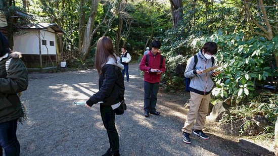 みんな、楽寿館ツアーに参加する前にレポートの課題を解いています。