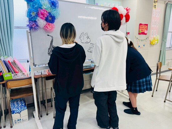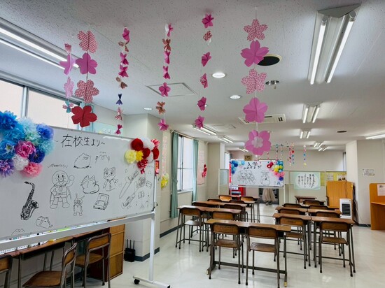 前日に在校生が気持ちを込めて施した絵と飾りが、とても華やかでした!