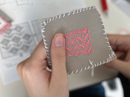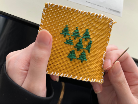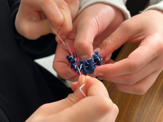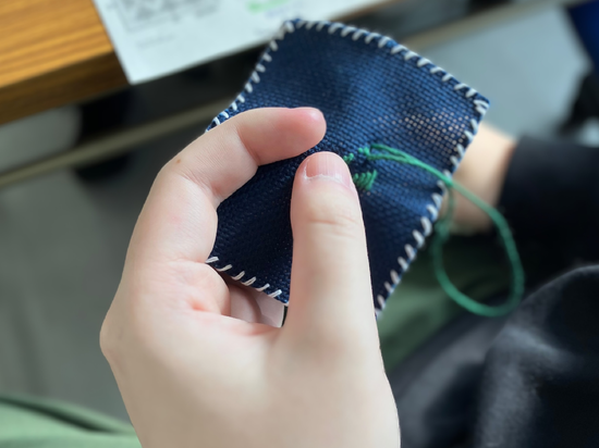 先日宮古キャンパスでは特別活動でこぎん刺繡に挑戦しました。