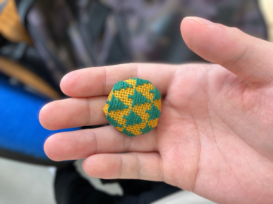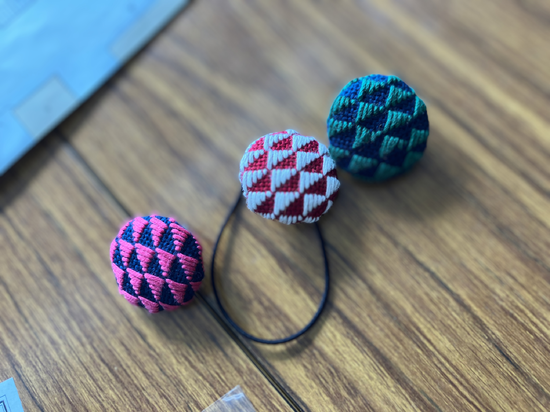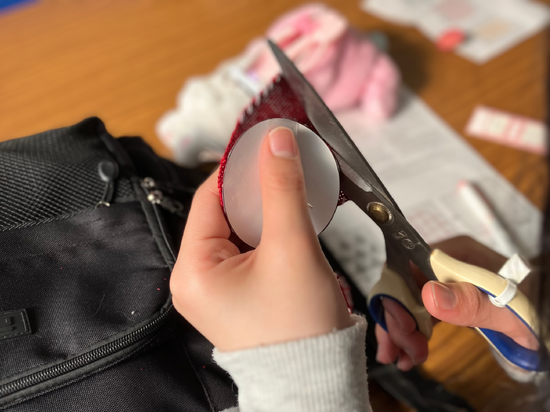 丸形にカットしたりほつれ防止のためにかがり縫いをしたり作業が続きます。