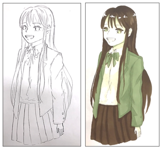 イラスト同好会の生徒に原画を描いて頂いて、三色塗り絵にチャレンジしています。