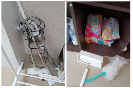 クイックルワイパーで床を掃除したり、マットの上は掃除機をかけたりした後に、ドアノブやテーブルの上を除菌しました。