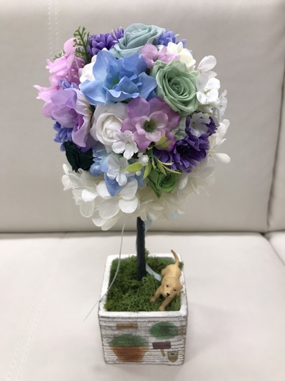 鉢の上の犬の飾りも、とってもかわいいですね!