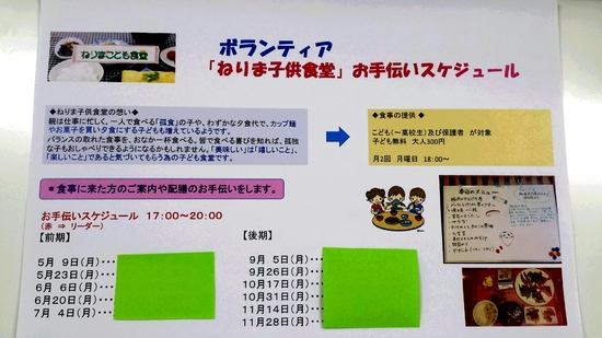 「こども食堂」ボランティア 2016-04-26 トピックス KG高等学院 練馬 5月から「ねりま子供食堂」にてボランティアでお手伝いをします☆ 小さな子供から高校生まで、無料でおなかいっぱいご飯が食べられる 子供食堂。 今回ご縁が有り、こちらで食堂運営のお手伝いをさせていただきます。 食べることの大切さは、生きることの大切さです。 このボランティアで自分達の目で見て感じたことを学んで下さい。 ☆ボランティアスケジュール☆ 一覧へ