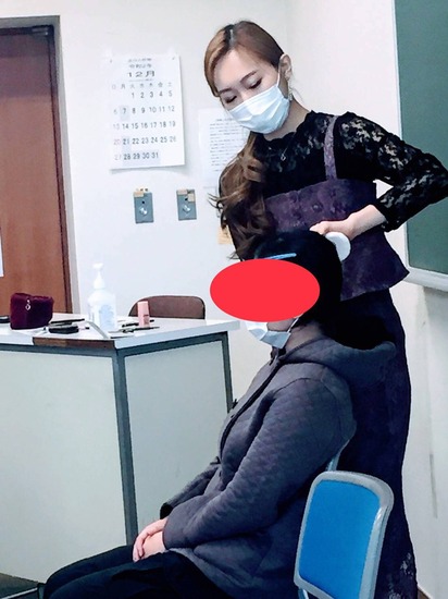 今度は、生徒の2人にモデルになってもらって、メイクアップの実践★