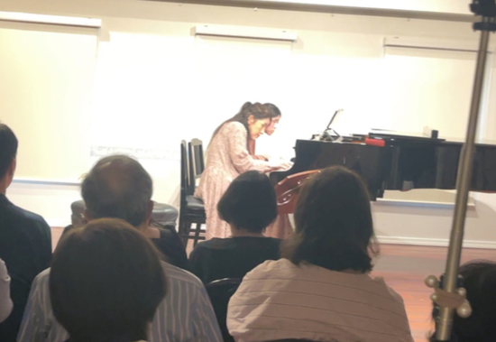 ◎特別活動 在校生によるピアノリサイタル見学&ボランティア(自由参加) 2025-06-15 お知らせ KG高等学院 西日暮里駅前 受付のボランティア😊 生徒によるピアノとチェロの生演奏😄 すごいっ大迫力💦 プロ演奏者と記念撮影してもらいました〜😃 一覧へ