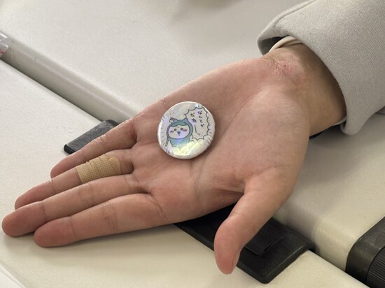 生徒の『推し』のちいかわのハチワレちゃんの缶バッジです!