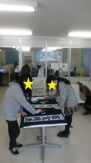 1月23日(火)、街中が雪で真っ白の中、大宮キャンパスでは、書初めを行いました。