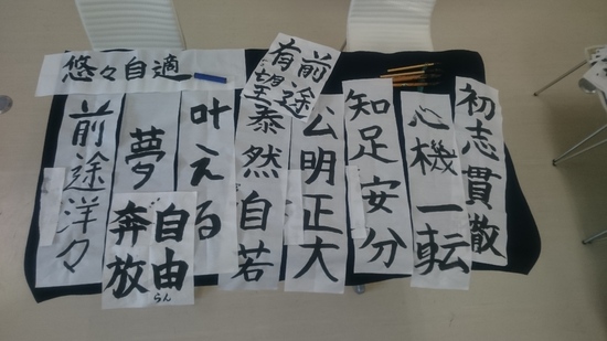 久しぶりに習字の筆を持つ生徒、11月の書道以来の生徒、いろいろでしたが、