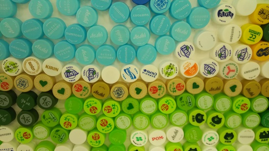 「めんどくさいっ」と言いながらもキャップ一つ一つにボンドをつけたり。