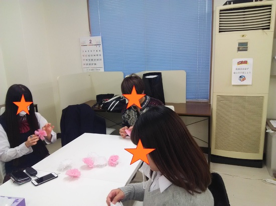 初めてお花づくりをする生徒もいて、薄くて柔らかいお花紙の取り扱いに悪戦苦闘する姿も